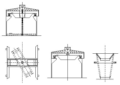 桥式起重机架设时,根据起重设备的能和,可整体架设也可分部架设,整体架设即除操纵室外,将桥架装好,把小车捆牢在桥架上待起升到比操纵室稍高后就将操纵室安装在桥架上,然后一起吊上厂房承轨梁(参见图4—2),分部架设即将桥架从端梁连接处拆开,把两根主梁分别架到厂房承梁上,再把小车起升到稍高于主梁,把两主梁靠拢将端梁连接好以后,aa后把小车放在主梁轨道上(参见图4—3)。