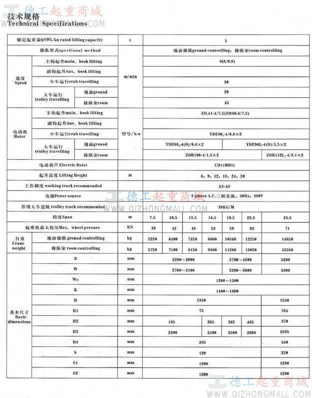 | 起重吨位 | 跨度 | 货号 | 价格 | 库存 |
