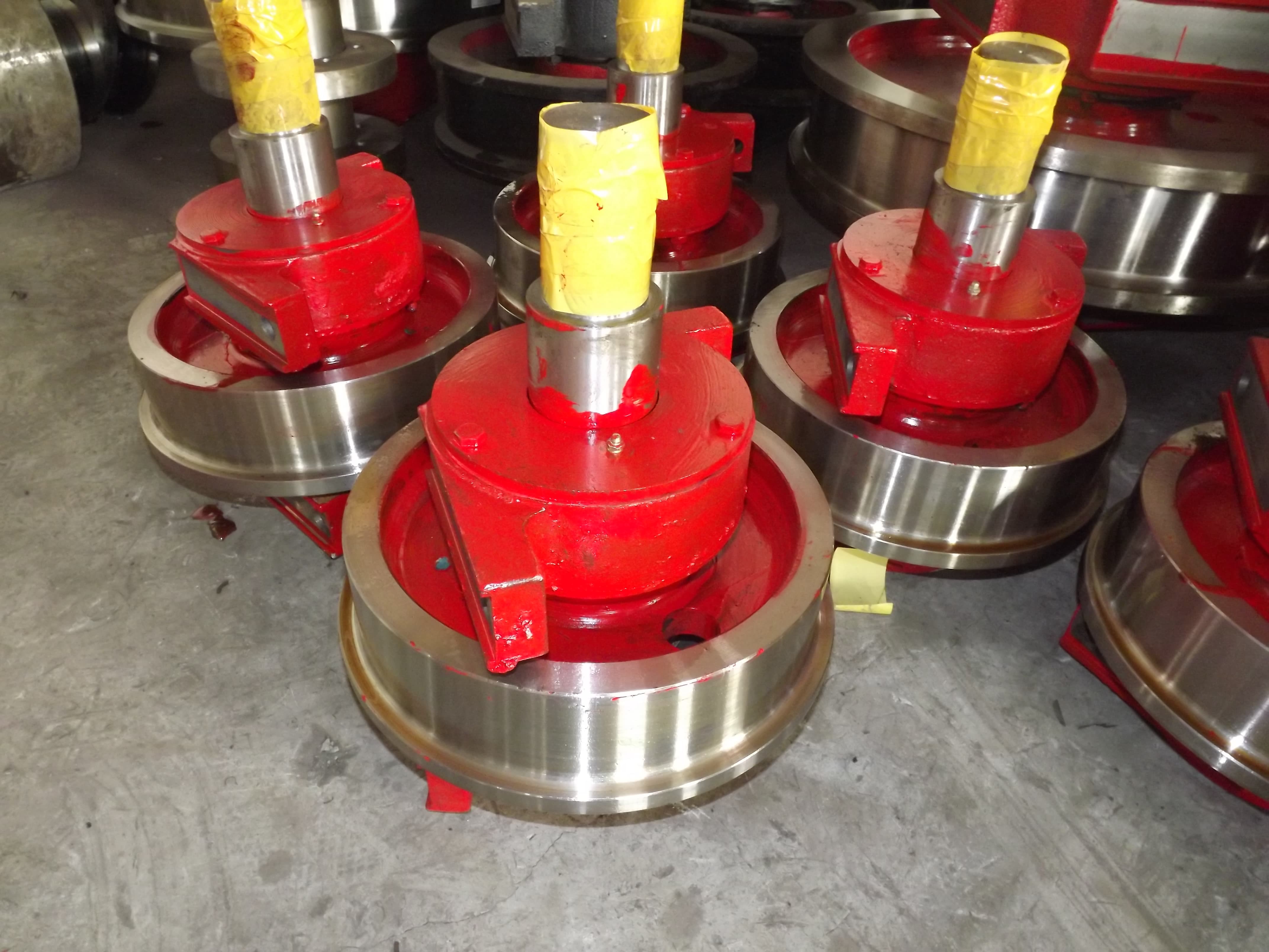 默认选择ZG340-640或55#,热处理为整体调质,使车轮踏面硬度在HB300-380,硬度层在大于等于20mm深处硬度不小于260HB,提高车轮的耐磨性及耐冲击性,进而提高了车轮的使用寿命。